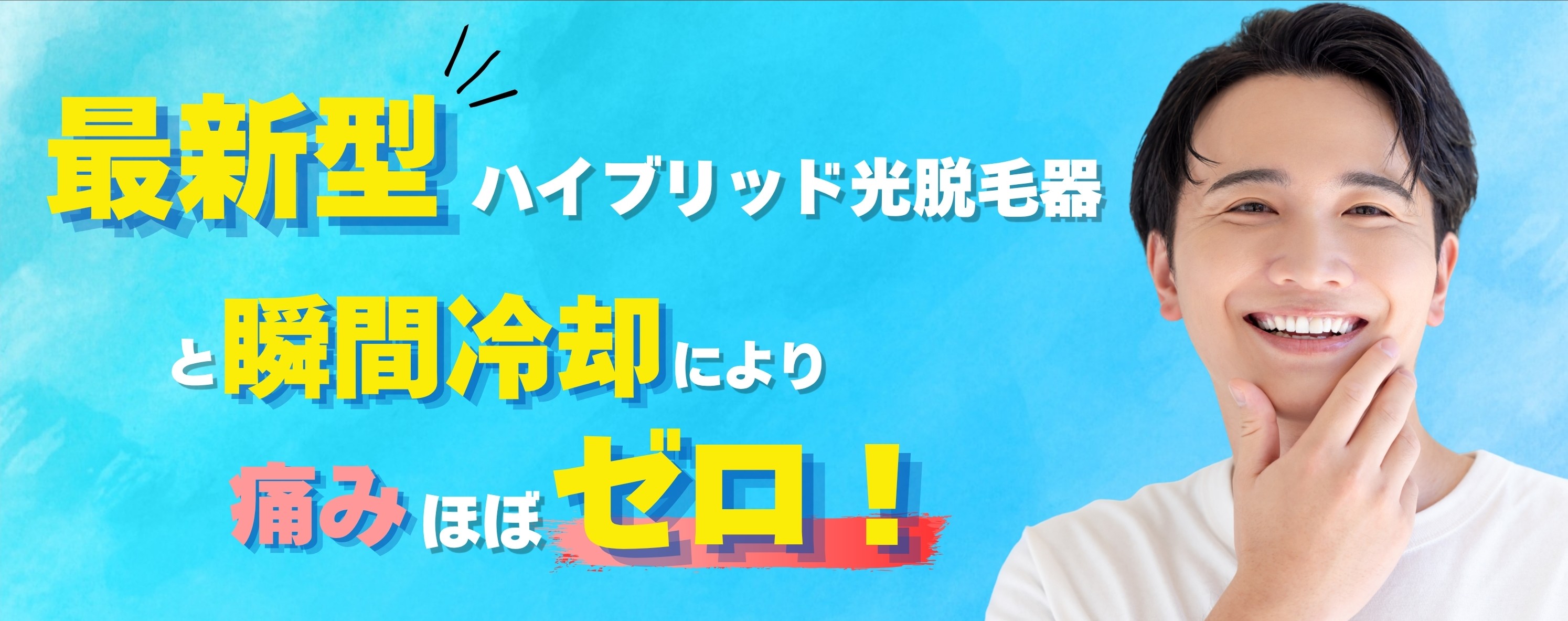 メンズクリアは、最新型ハイブリッド光脱毛器と瞬間冷却により痛みは最小限で、快適に施術を受けられる!それでいて毛に対してしっかりアプローチし、効果を実感しやすいのが一番の強みです。自己処理の手間を省き、清潔感と自信を手に入れよう!