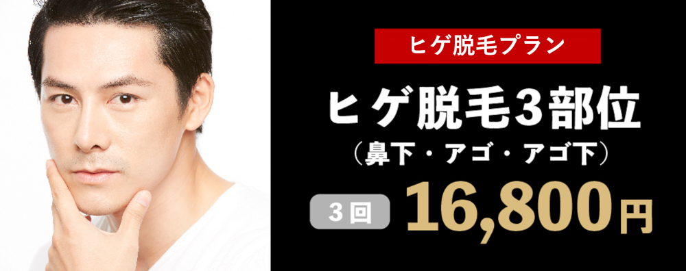 「鼻下・あご上・あご下」といった三部位のヒゲ脱毛3回コースを8,400円で始められます!